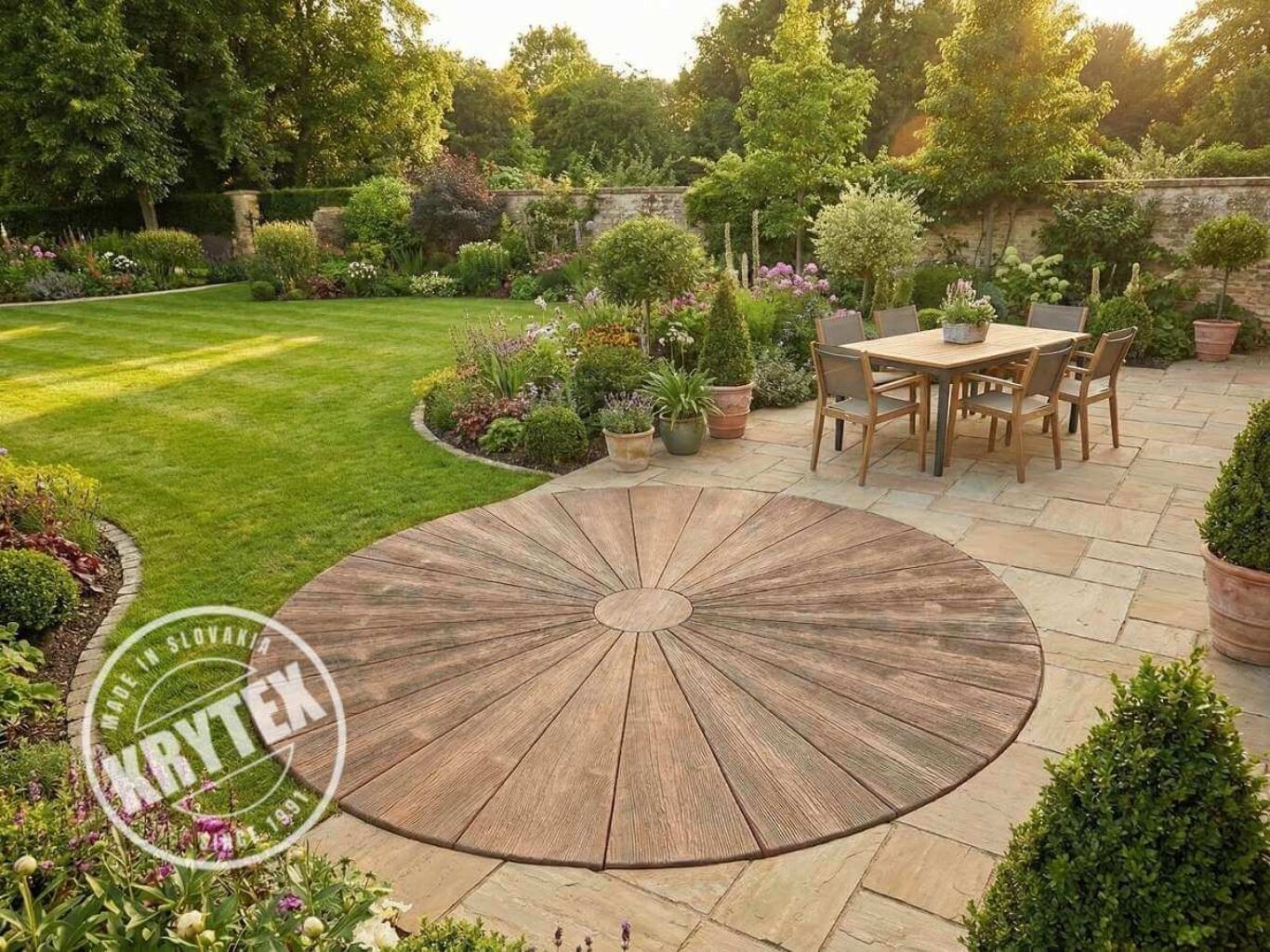 Záhradná dlažba v imitácii dreva – trojuholníky pre kruhové vzory!